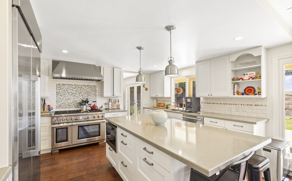 Remarks : Tucked at the end of a peaceful cul-de-sac in Lake Encino, this home combines warmth, comfort, and incredible Valley views. Step inside to a dramatic two-story entry with a curved staircase and rich walnut floors that carry throughout. The open layout flows easily from the chef's kitchen with a large island, walk-in pantry, and top-of-the-line Stainless Steel Thermador appliances into the family room with a cozy fireplace. French doors open from both the dining and living rooms to a backyard made for entertaining, complete with a pool, spa, and sweeping views across the Valley. There's also a main-level office/bedroom with French doors that open to the yard perfect for working from home. Upstairs, the primary suite feels like a retreat with its custom walk-in closet, spa-style bathroom, and a private balcony to take in the views. Two additional bedrooms, each with balcony access, complete the second floor. The home also includes solar panels (paid off in full at close of escrow and transferred to buyer), providing energy efficiency and long-term savings. Residents enjoy access to the community tennis and sport courts, maintained by the HOA. The home sits just minutes from Braemar Country Club and Ventura Blvd.
