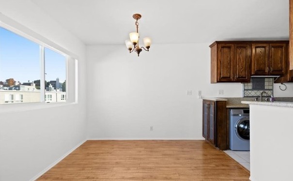 Remarks : Welcome home to this inviting top-floor condo, featuring 3 bedrooms, 2 bathrooms. Den is used as the third bedroom. Enjoy a light-filled open layout with a private balcony offering beautiful north-facing mountain views. The spacious kitchen boasts real wood cabinetry, granite countertops, and stainless steel appliances, and is conveniently equipped with an in-unit washer and dryer. Both bedrooms offer generous space and ample closets, complemented by fresh paint, new vinyl flooring, new window treatments, and a brand-new AC unit for year-round comfort. Located in a prime spot within the community, this unit provides easy elevator access with no stairs required. In addition to the in-unit laundry, you ll appreciate the large community laundry room downstairs for added convenience. The community offers fantastic amenities, including two tandem parking spaces, a private storage closet, a gym, pool, spa, and BBQ area everything you need for comfortable and convenient living.